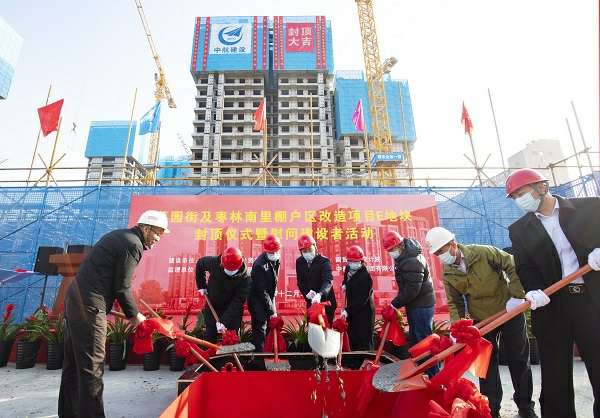 12月22日,伴随着最后一方混凝土浇筑到位,在项目建设、监理、设计等相关单位负责人及集团公司领导的共同见证下,乐动·网站在线注册-乐动(中国)承建的菜园街及枣林南里棚户区改造项目喜迎主体结构封顶。